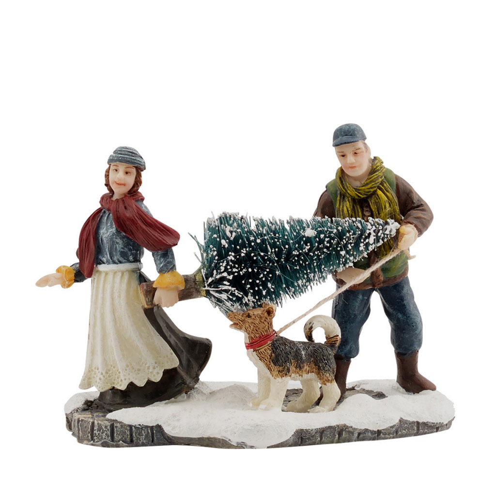 Diese Pärchen hat den Weihnachtsbaum besorgt und bringt diesen nun mit vereinten Kräften nach Hause.