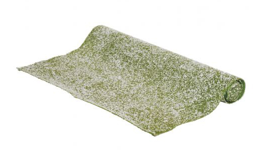Mit Schnee behaftete, ansonsten grün beflockte Untergrundmatte.