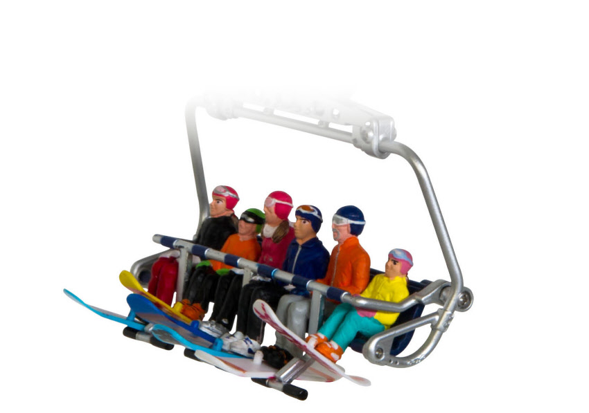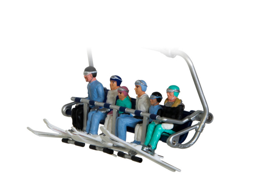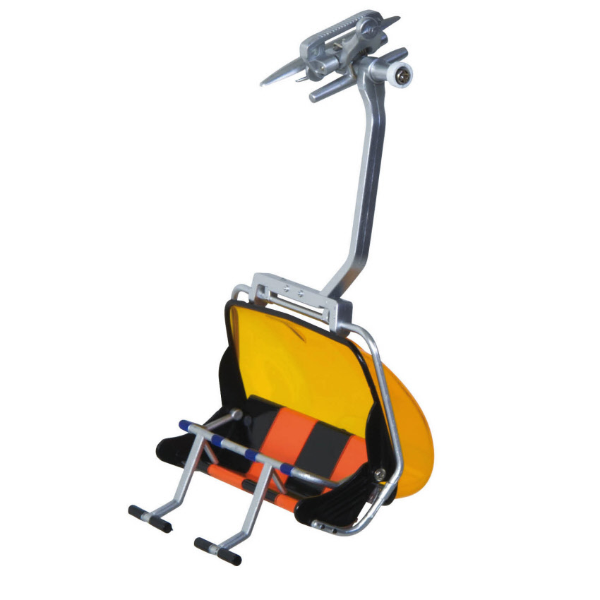 Die separat erhältlichen Gondeln oder Sessel lassen sich ohne großen Aufwand am Seil befestigen und ergeben so einen natürlichen Liftbetrieb.