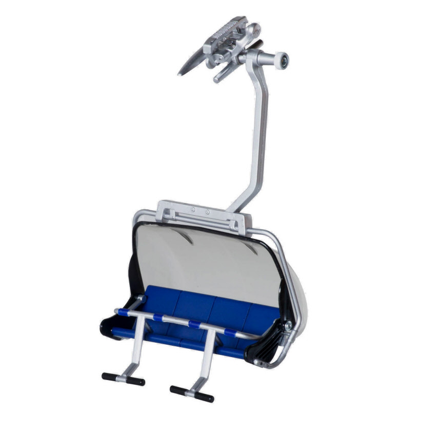 Bestehend aus der Talstation mit Antrieb und verglastem Gebäude, Stütze mit Umlenkrolle, der Bergstation mit Umlenkrolle, einer silber/schwarzen Kabine, einem 6-er Sessel und 8m Kabel mit Verbindungstülle.